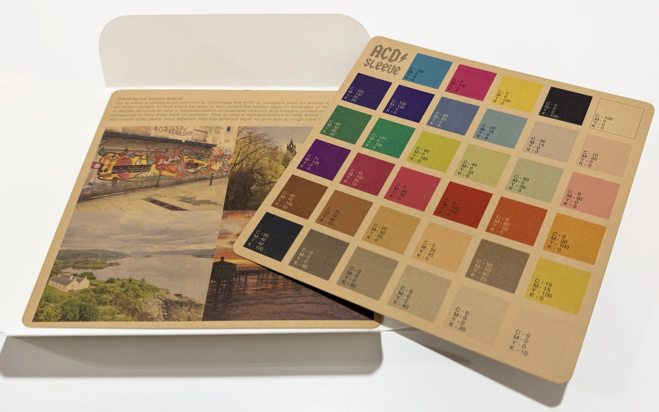 I am aware that only offering print on brown board is a little restrictive to artwork, so I've come up with a guide to show how print looks on screen vs. a printed sample.